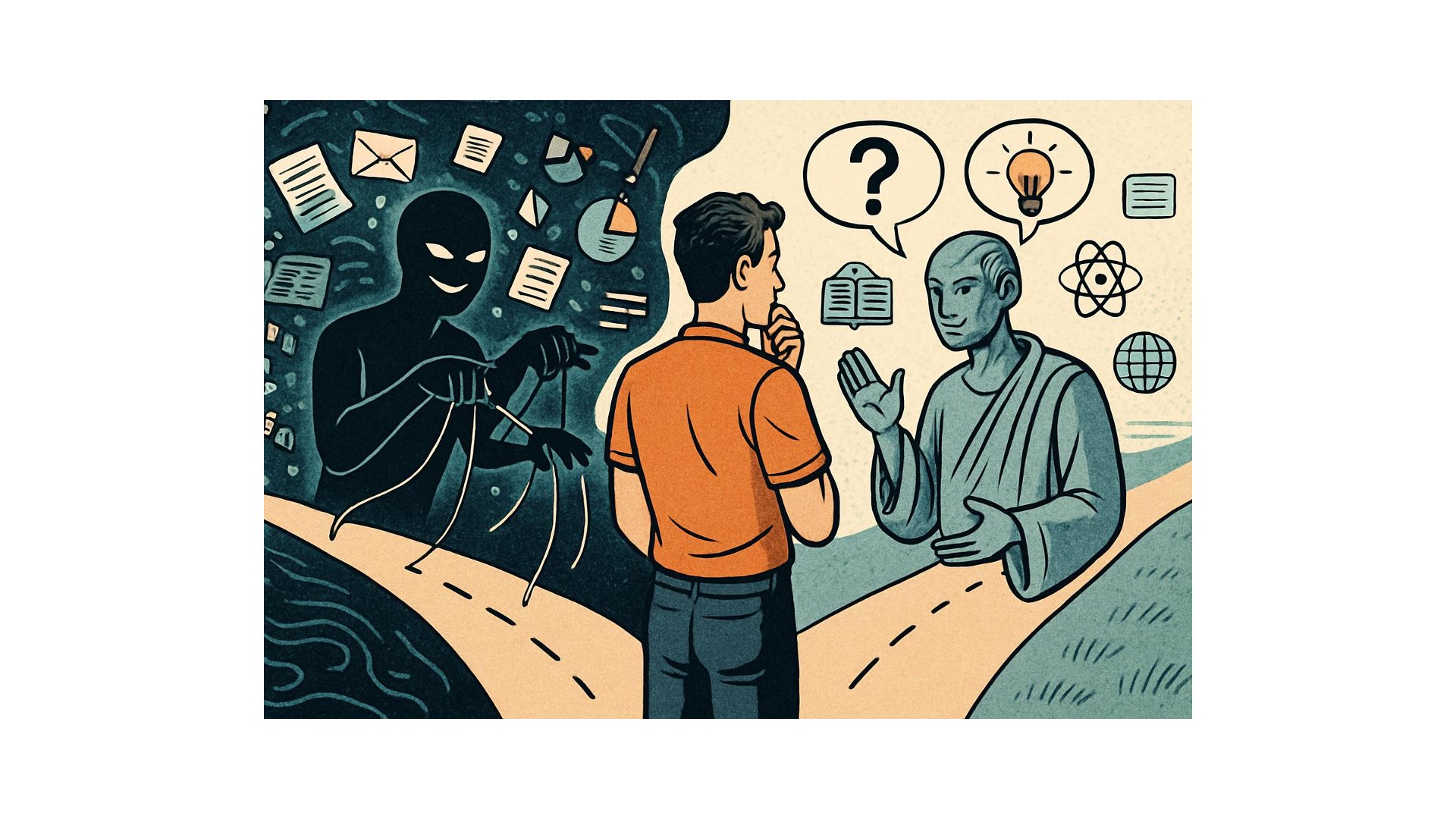 Die Weichenstellung, vor der wir stehen, ist fundamental: Werden wir KI nutzen, um Rhetorik zu automatisieren – geschickte Überredung im industriellen Maßstab – oder um Philosophie zu automatisieren – die Kunst des gemeinsamen Nachdenkens und der systematischen Wahrheitssuche?