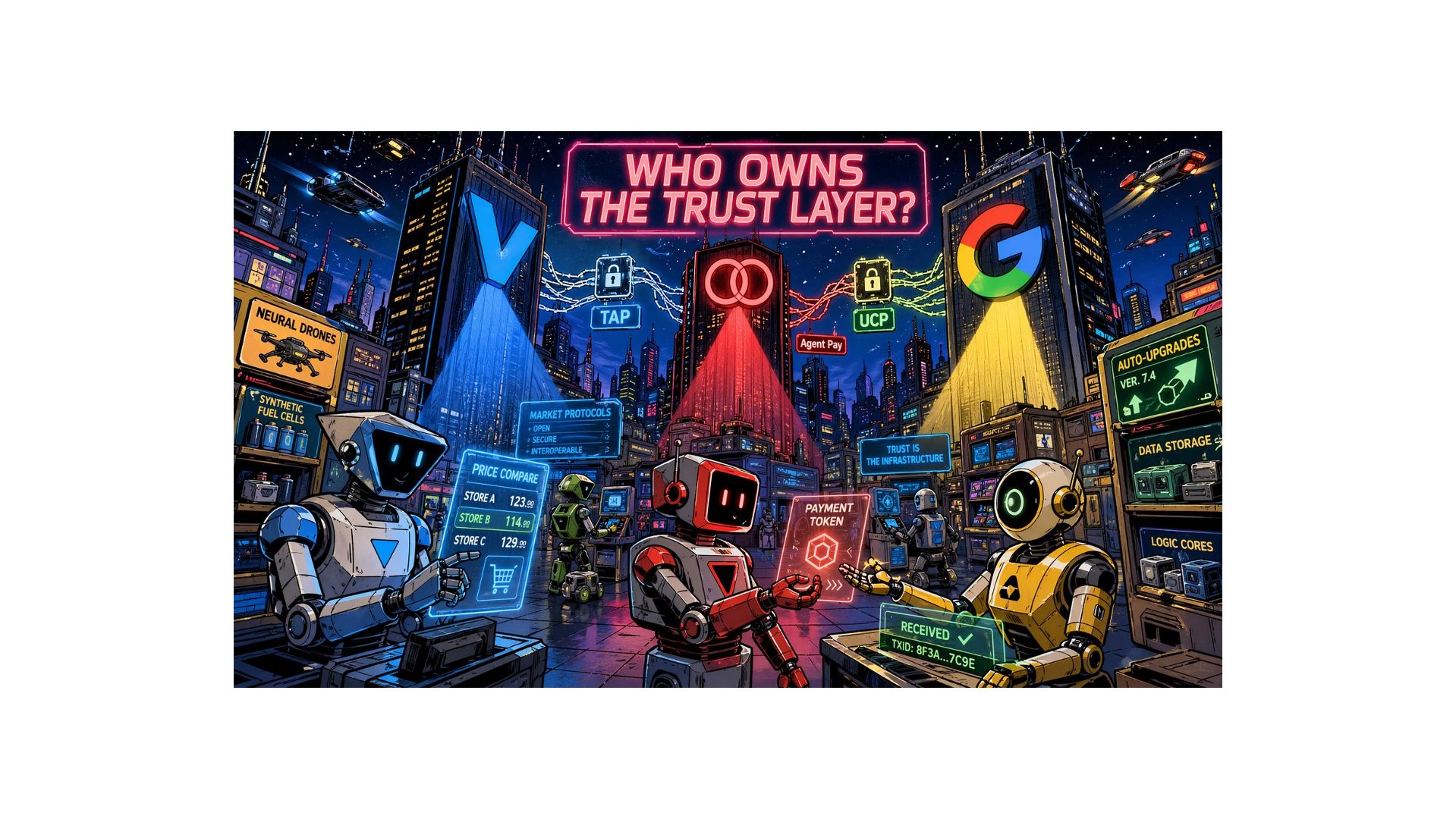 Wer kün­ftig die Transak­tion eines autonomen Agen­ten ver­i­fiziert, kon­trol­liert einen neuen Infra­struk­tur­knoten der Weltwirtschaft. Diese Ein­sicht erk­lärt die Inten­sität, mit der sich die großen Zahlungs­di­en­stleis­ter seit 2025 in der Pro­tokoll­frage posi­tion­ieren.